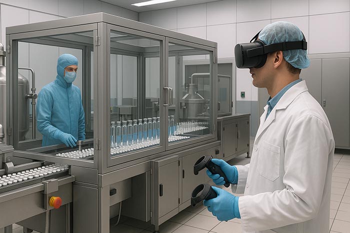 In 2018, our team developed a VR simulator for an Institute to train and test professionals inspecting drug production. In virtual reality, inspectors follow and evaluate the entire drug preparation process. The application features client-server architecture and was built for desktop VR systems with touch controllers.